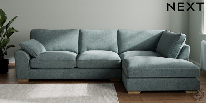 7.3.1 Buy Stamford Grand Relaxed Sit Large Corner Chaise - Right Hand Chunky Chenille Light Teal Green Large Square Angle - Light from the Seasons online shop Click here to use our website with more accessibility support, for example screen readers