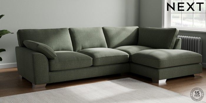 7.3.1 Buy Stamford Grand Relaxed Sit Large Corner Chaise - Right Hand Chunky Texture Mid Forest Green Large Square Angle - Chrome Metal from the Seasons online shop Click here to use our website with more accessibility support, for example screen readers