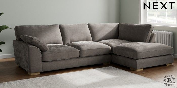 7.3.1 Buy Stamford Grand Relaxed Sit Large Corner Chaise - Right Hand Distressed Velour French Grey Large Square Angle - Light from the Seasons online shop Click here to use our website with more accessibility support, for example screen readers
