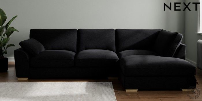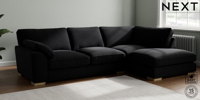 7.3.1 Buy Stamford Grand Relaxed Sit Large Corner Chaise - Right Hand Fine Chenille Easy Clean Black Large Square Angle - Light from the Seasons online shop Click here to use our website with more accessibility support, for example screen readers