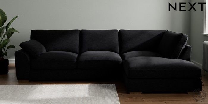7.3.1 Buy Stamford Grand Relaxed Sit Large Corner Chaise - Right Hand Fine Chenille Easy Clean Black Large Square Angle - Mid from the Seasons online shop Click here to use our website with more accessibility support, for example screen readers