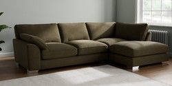 7.3.1 Buy Stamford Grand Relaxed Sit Large Corner Chaise - Right Hand Fine Chenille Easy Clean Dark Moss Green Large Square Angle - Chrome Metal from the Seasons online shop