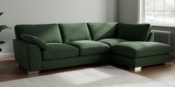 7.3.1 Buy Stamford Grand Relaxed Sit Large Corner Chaise - Right Hand Fine Chenille Easy Clean Mid Khaki Green Large Square Angle - Chrome Metal from the Seasons online shop