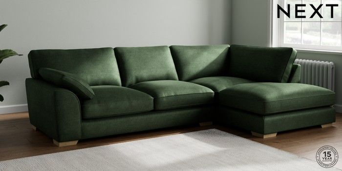 7.3.1 Buy Stamford Grand Relaxed Sit Large Corner Chaise - Right Hand Luxe Chenille Dark Green Large Square Angle - Light from the Seasons online shop Click here to use our website with more accessibility support, for example screen readers