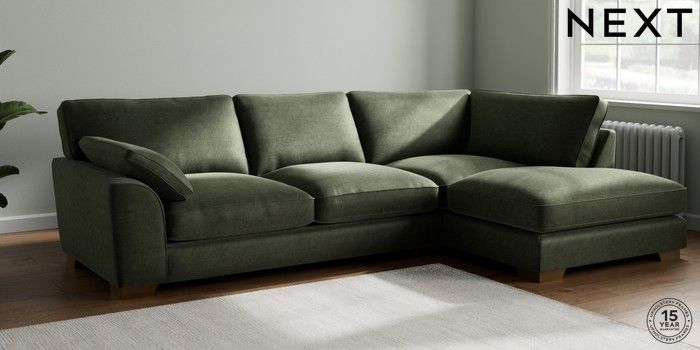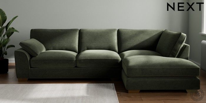 7.3.1 Buy Stamford Grand Relaxed Sit Large Corner Chaise - Right Hand Luxe Chenille Mid Green Large Square Angle - Brushed Brass from the Seasons online shop Click here to use our website with more accessibility support, for example screen readers