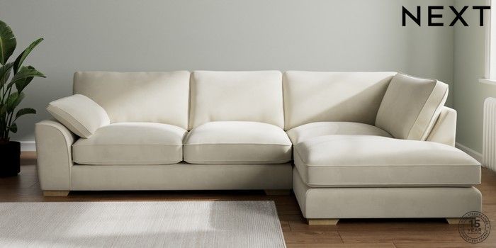 7.3.1 Buy Stamford Grand Relaxed Sit Large Corner Chaise - Right Hand Luxe Chenille Oyster Large Square Angle - Light from the Seasons online shop Click here to use our website with more accessibility support, for example screen readers