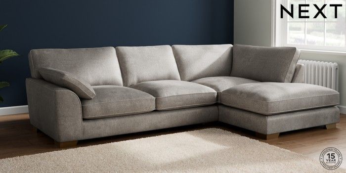 7.3.1 Buy Stamford Grand Relaxed Sit Large Corner Chaise - Right Hand Plush Chenille Light Grey Large Square Angle - Brushed Brass from the Seasons online shop Click here to use our website with more accessibility support, for example screen readers