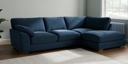 7.3.1 Buy Stamford Grand Relaxed Sit Large Corner Chaise - Right Hand Plush Velvet Easy Clean Airforce Blue Large Square Angle - Brushed Brass from the Seasons online shop