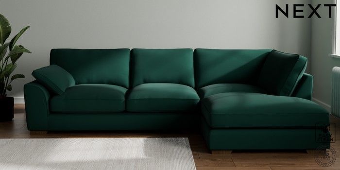 7.3.1 Buy Stamford Grand Relaxed Sit Large Corner Chaise - Right Hand Plush Velvet Easy Clean Bottle Green Large Square Angle - Mid from the Seasons online shop