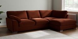 7.3.1 Buy Stamford Grand Relaxed Sit Large Corner Chaise - Right Hand Plush Velvet Easy Clean Ginger Orange Large Square Angle - Gunmetal from the Seasons online shop