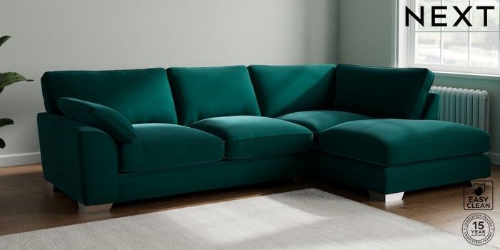 7.3.1 Buy Stamford Grand Relaxed Sit Large Corner Chaise - Right Hand Plush Velvet Easy Clean Juniper Green Large Square Angle - Chrome Metal from the Seasons online shop