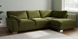 7.3.1 Buy Stamford Grand Relaxed Sit Large Corner Chaise - Right Hand Plush Velvet Easy Clean Mid Olive Green Large Square Angle - Chrome Metal from the Seasons online shop
