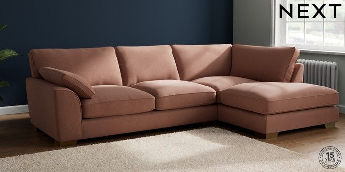 7.3.1 Buy Stamford Grand Relaxed Sit Large Corner Chaise - Right Hand Relaxed Linen Look Light Rust Brown Large Square Angle - Brushed Brass from the Seasons online shop Click here to use our website with more accessibility support, for example screen readers
