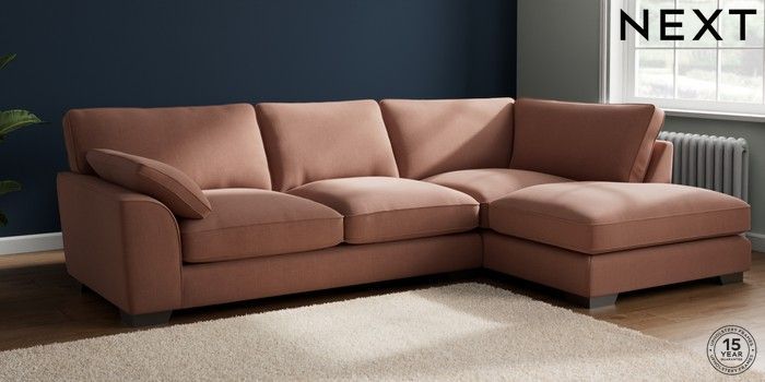 7.3.1 Buy Stamford Grand Relaxed Sit Large Corner Chaise - Right Hand Relaxed Linen Look Light Rust Brown Large Square Angle - Gunmetal from the Seasons online shop Click here to use our website with more accessibility support, for example screen readers