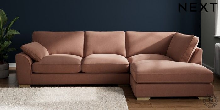 7.3.1 Buy Stamford Grand Relaxed Sit Large Corner Chaise - Right Hand Relaxed Linen Look Light Rust Brown Large Square Angle - Light from the Seasons online shop Click here to use our website with more accessibility support, for example screen readers