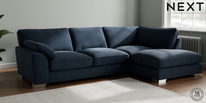 7.3.1 Buy Stamford Grand Relaxed Sit Large Corner Chaise - Right Hand Ripple Chenille Dark Blue Large Square Angle - Chrome Metal from the Seasons online shop Click here to use our website with more accessibility support, for example screen readers