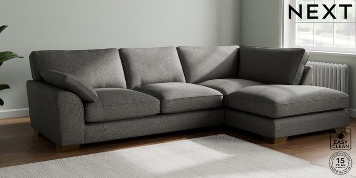 7.3.1 Buy Stamford Grand Relaxed Sit Large Corner Chaise - Right Hand Tweedy Blend Easy Clean Dark Grey Large Square Angle - Brushed Brass from the Seasons online shop Click here to use our website with more accessibility support, for example screen readers