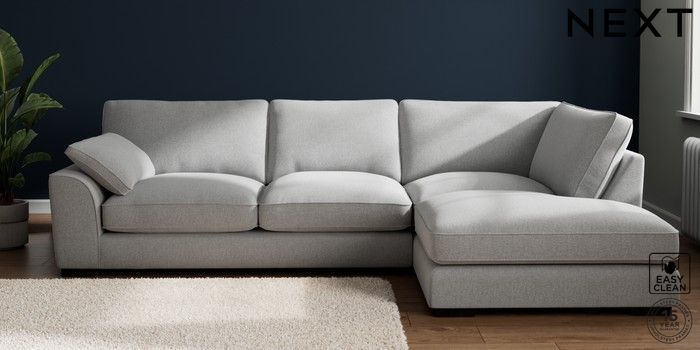 7.3.1 Buy Stamford Grand Relaxed Sit Large Corner Chaise - Right Hand Tweedy Blend Easy Clean Light Silver Grey Large Square Angle - Dark from the Seasons online shop Click here to use our website with more accessibility support, for example screen readers