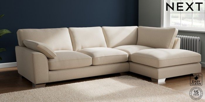 7.3.1 Buy Stamford Grand Relaxed Sit Large Corner Chaise - Right Hand Tweedy Blend Easy Clean Oyster Large Square Angle - Chrome Metal from the Seasons online shop
