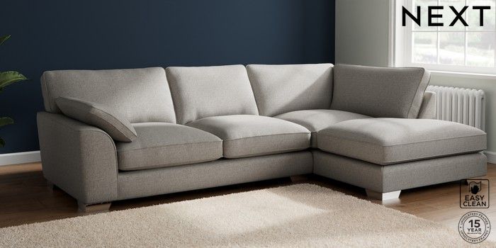 7.3.1 Buy Stamford Grand Relaxed Sit Large Corner Chaise - Right Hand Woven Chenille Easy Clean Light Grey Large Square Angle - Chrome Metal from the Seasons online shop Click here to use our website with more accessibility support, for example screen readers