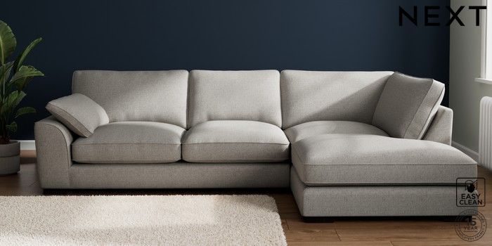 7.3.1 Buy Stamford Grand Relaxed Sit Large Corner Chaise - Right Hand Woven Chenille Easy Clean Light Grey Large Square Angle - Dark from the Seasons online shop Click here to use our website with more accessibility support, for example screen readers