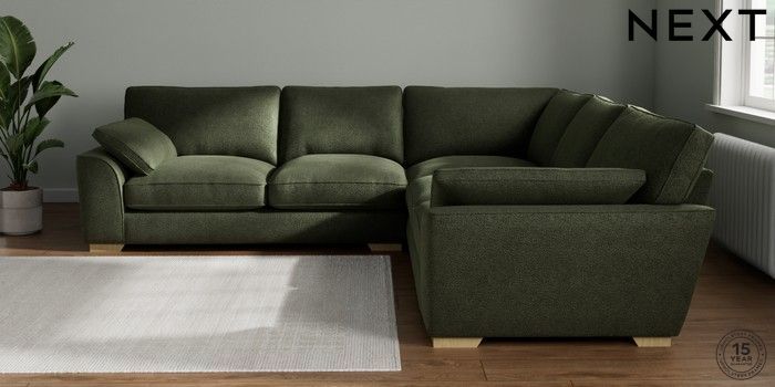 7.3.1 Buy Stamford Grand Relaxed Sit Large Corner Sofa - Universal Boucle Chenille Dark Moss Green Large Square Angle - Light from the Seasons online shop Click here to use our website with more accessibility support, for example screen readers