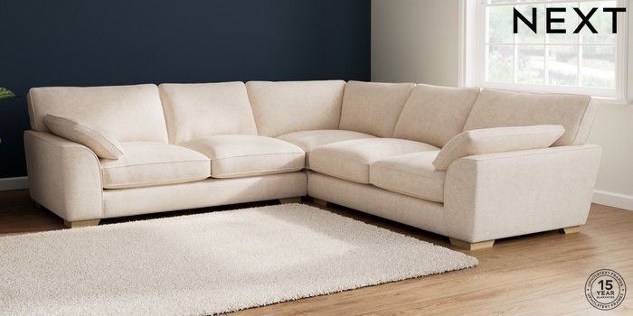 7.3.1 Buy Stamford Grand Relaxed Sit Large Corner Sofa - Universal Boucle Chenille Oyster Large Square Angle - Light from the Seasons online shop Click here to use our website with more accessibility support, for example screen readers
