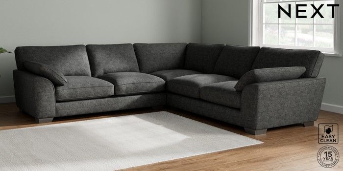 7.3.1 Buy Stamford Grand Relaxed Sit Large Corner Sofa - Universal Boucle Weave Easy Clean Charcoal Grey Large Square Angle - Gunmetal from the Seasons online shop Click here to use our website with more accessibility support, for example screen readers