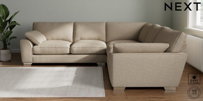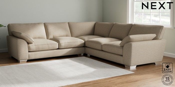 7.3.1 Buy Stamford Grand Relaxed Sit Large Corner Sofa - Universal Boucle Weave Easy Clean Dark Natural Large Square Angle - Chrome Metal from the Seasons online shop Click here to use our website with more accessibility support, for example screen readers