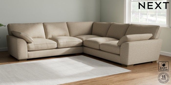 7.3.1 Buy Stamford Grand Relaxed Sit Large Corner Sofa - Universal Boucle Weave Easy Clean Dark Natural Large Square Angle - Mid from the Seasons online shop Click here to use our website with more accessibility support, for example screen readers
