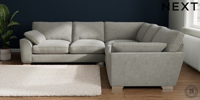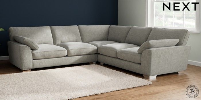 7.3.1 Buy Stamford Grand Relaxed Sit Large Corner Sofa - Universal Chunky Chenille Light Grey Large Square Angle - Chrome Metal from the Seasons online shop Click here to use our website with more accessibility support, for example screen readers