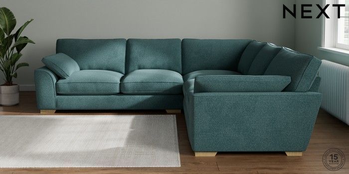 7.3.1 Buy Stamford Grand Relaxed Sit Large Corner Sofa - Universal Chunky Chenille Mid Teal Green Large Square Angle - Light from the Seasons online shop Click here to use our website with more accessibility support, for example screen readers