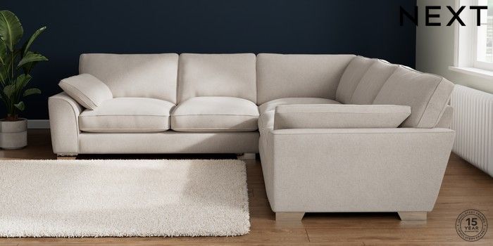 7.3.1 Buy Stamford Grand Relaxed Sit Large Corner Sofa - Universal Chunky Chenille Oyster Large Square Angle - Chrome Metal from the Seasons online shop Click here to use our website with more accessibility support, for example screen readers