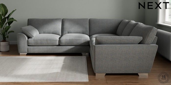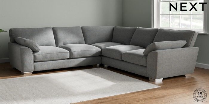 7.3.1 Buy Stamford Grand Relaxed Sit Large Corner Sofa - Universal Chunky Marl Mid Grey Large Square Angle - Chrome Metal from the Seasons online shop Click here to use our website with more accessibility support, for example screen readers