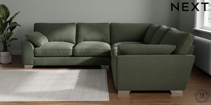 7.3.1 Buy Stamford Grand Relaxed Sit Large Corner Sofa - Universal Chunky Texture Mid Forest Green Large Square Angle - Chrome Metal from the Seasons online shop Click here to use our website with more accessibility support, for example screen readers