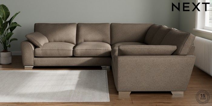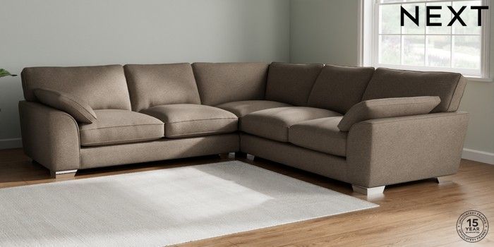 7.3.1 Buy Stamford Grand Relaxed Sit Large Corner Sofa - Universal Chunky Weave Dark Natural Large Square Angle - Chrome Metal from the Seasons online shop Click here to use our website with more accessibility support, for example screen readers