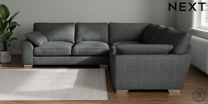 7.3.1 Buy Stamford Grand Relaxed Sit Large Corner Sofa - Universal Cotswold Chenille Dark Grey Large Square Angle - Chrome Metal from the Seasons online shop Click here to use our website with more accessibility support, for example screen readers