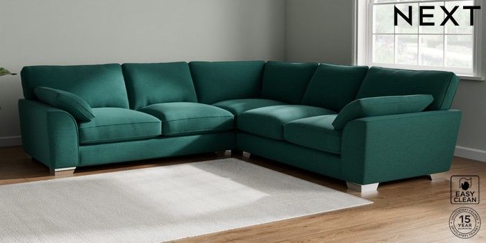 7.3.1 Buy Stamford Grand Relaxed Sit Large Corner Sofa - Universal Fine Chenille Easy Clean Dark Juniper Green Large Square Angle - Chrome Metal from the Seasons online shop Click here to use our website with more accessibility support, for example screen readers