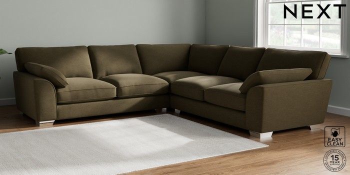7.3.1 Buy Stamford Grand Relaxed Sit Large Corner Sofa - Universal Fine Chenille Easy Clean Dark Moss Green Large Square Angle - Chrome Metal from the Seasons online shop Click here to use our website with more accessibility support, for example screen readers