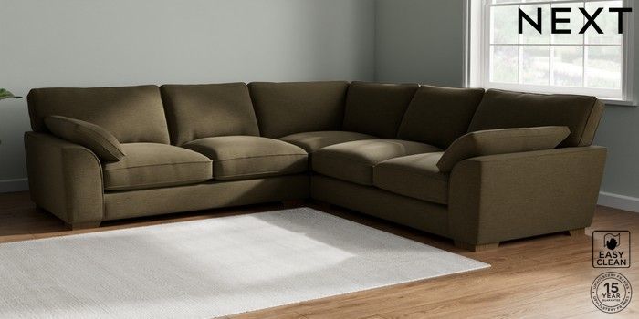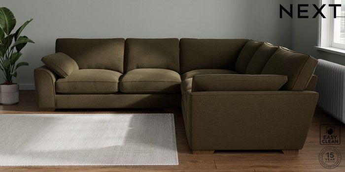 7.3.1 Buy Stamford Grand Relaxed Sit Large Corner Sofa - Universal Fine Chenille Easy Clean Dark Moss Green Large Square Angle - Mid from the Seasons online shop Click here to use our website with more accessibility support, for example screen readers