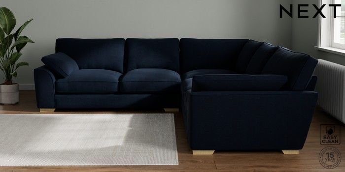 7.3.1 Buy Stamford Grand Relaxed Sit Large Corner Sofa - Universal Fine Chenille Easy Clean Dark Navy Blue Large Square Angle - Light from the Seasons online shop Click here to use our website with more accessibility support, for example screen readers