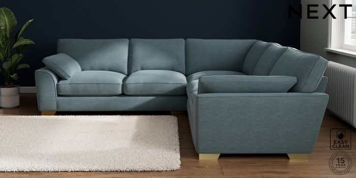 7.3.1 Buy Stamford Grand Relaxed Sit Large Corner Sofa - Universal Fine Chenille Easy Clean Mid Blue Large Square Angle - Brushed Brass from the Seasons online shop Click here to use our website with more accessibility support, for example screen readers