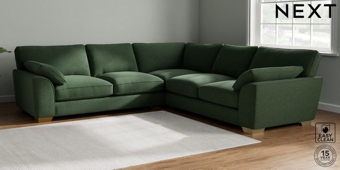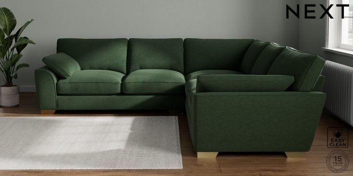 7.3.1 Buy Stamford Grand Relaxed Sit Large Corner Sofa - Universal Fine Chenille Easy Clean Mid Khaki Green Large Square Angle - Brushed Brass from the Seasons online shop Click here to use our website with more accessibility support, for example screen readers