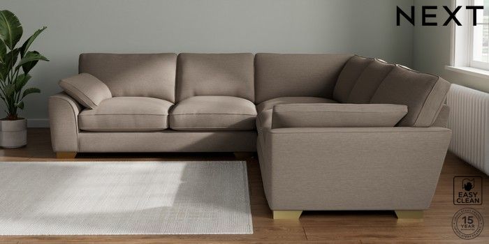 7.3.1 Buy Stamford Grand Relaxed Sit Large Corner Sofa - Universal Fine Chenille Easy Clean Mid Taupe Brown Large Square Angle - Brushed Brass from the Seasons online shop Click here to use our website with more accessibility support, for example screen readers