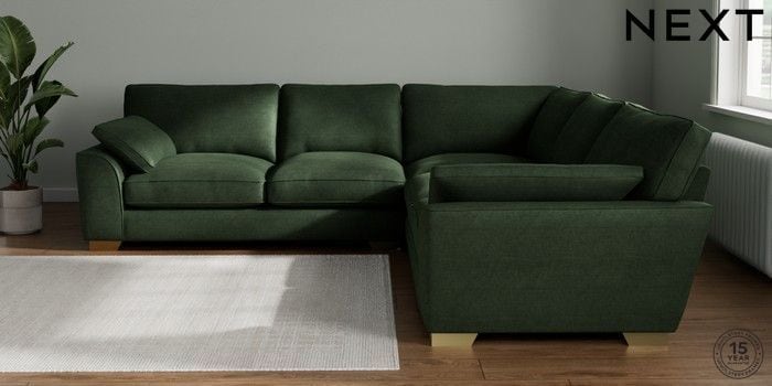 7.3.1 Buy Stamford Grand Relaxed Sit Large Corner Sofa - Universal Luxe Chenille Dark Green Large Square Angle - Brushed Brass from the Seasons online shop Click here to use our website with more accessibility support, for example screen readers