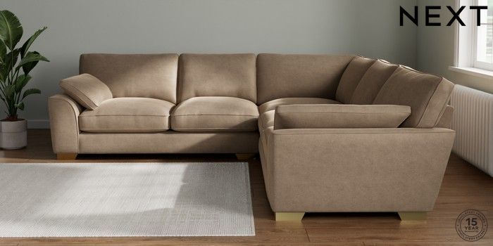 7.3.1 Buy Stamford Grand Relaxed Sit Large Corner Sofa - Universal Luxe Chenille Mid Camel Beige Large Square Angle - Brushed Brass from the Seasons online shop Click here to use our website with more accessibility support, for example screen readers