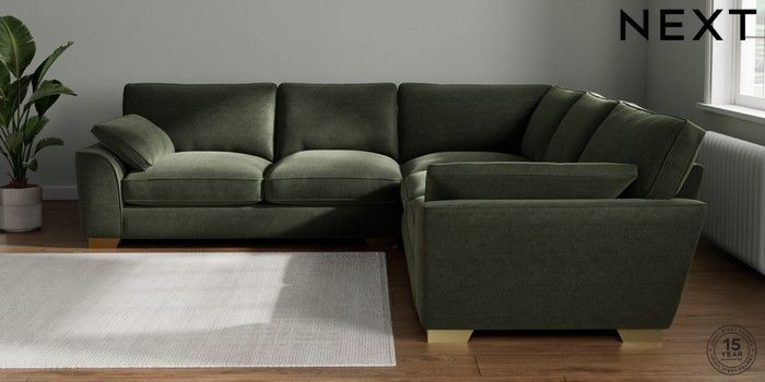 7.3.1 Buy Stamford Grand Relaxed Sit Large Corner Sofa - Universal Luxe Chenille Mid Green Large Square Angle - Brushed Brass from the Seasons online shop Click here to use our website with more accessibility support, for example screen readers