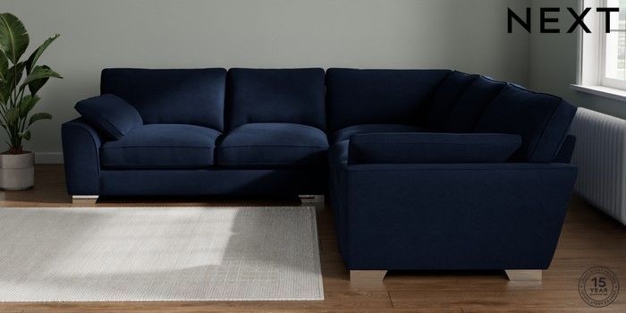 7.3.1 Buy Stamford Grand Relaxed Sit Large Corner Sofa - Universal Luxe Chenille Navy Blue Large Square Angle - Chrome Metal from the Seasons online shop Click here to use our website with more accessibility support, for example screen readers