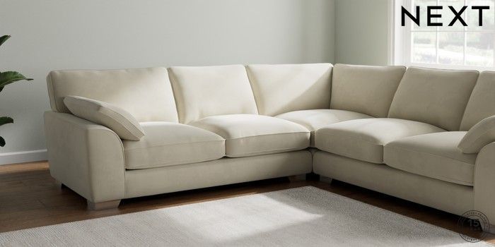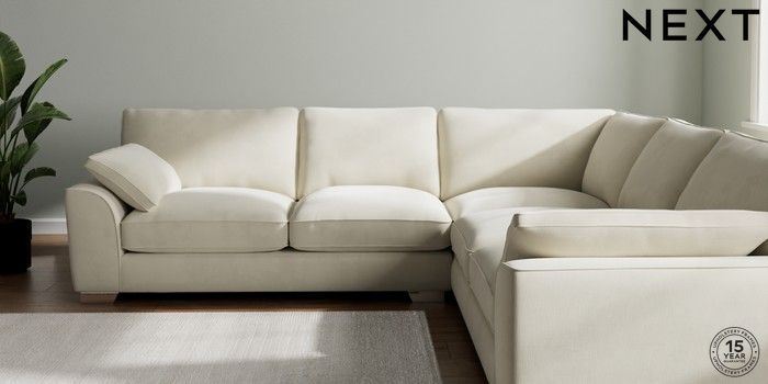 7.3.1 Buy Stamford Grand Relaxed Sit Large Corner Sofa - Universal Luxe Chenille Oyster Large Square Angle - Chrome Metal from the Seasons online shop Click here to use our website with more accessibility support, for example screen readers