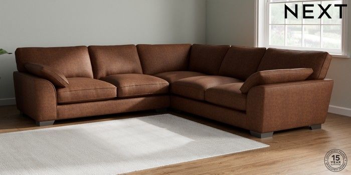 7.3.1 Buy Stamford Grand Relaxed Sit Large Corner Sofa - Universal Monza Faux Leather Easy Clean Chestnut Brown Large Square Angle - Gunmetal from the Seasons online shop